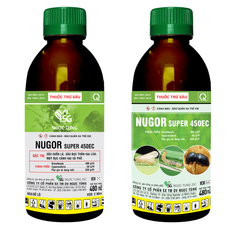 NUGOR SUPER 450EC là kết hợp hai hoạt chất nhóm lân hữu cơ và cúc tổng hợp có hiệu lực diệt sâu nhanh và kéo dài.
