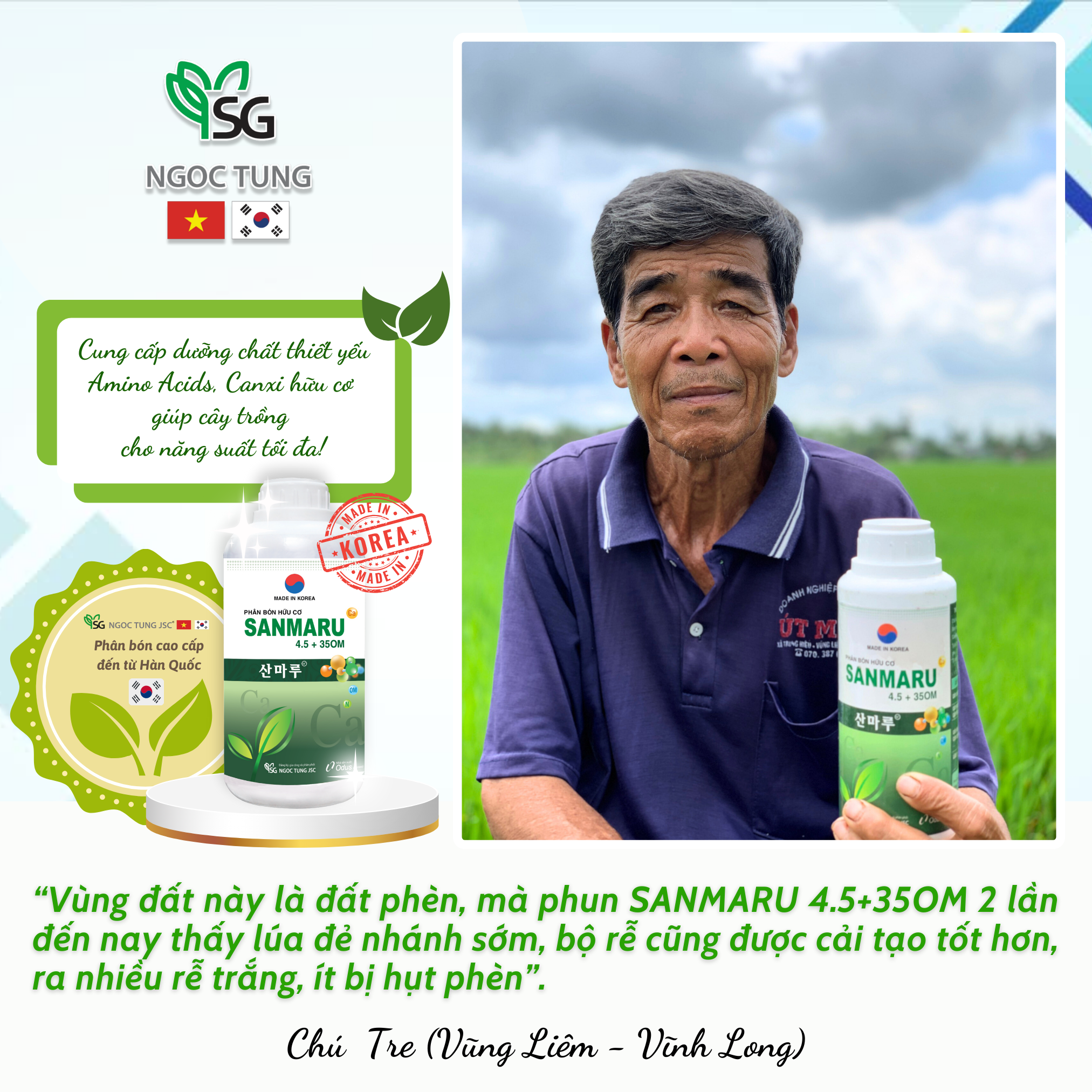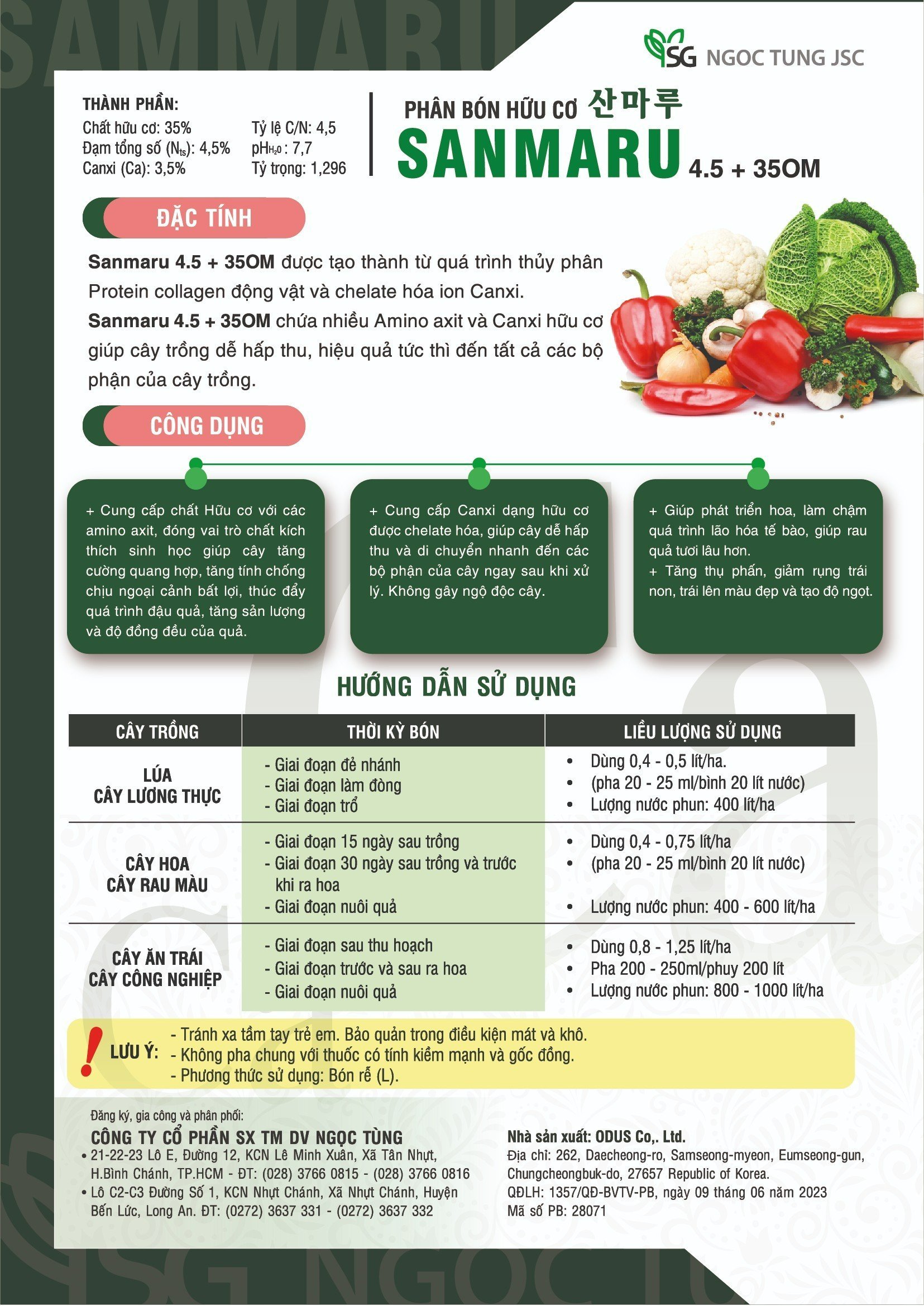 CÔNG DỤNG PHÂN BÓN HỮU CƠ SANMARU 4.5+35OM